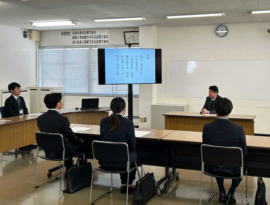 1月6日、ヒワサキ本社にて2026年度入社予定者の内定式を執り行いました。